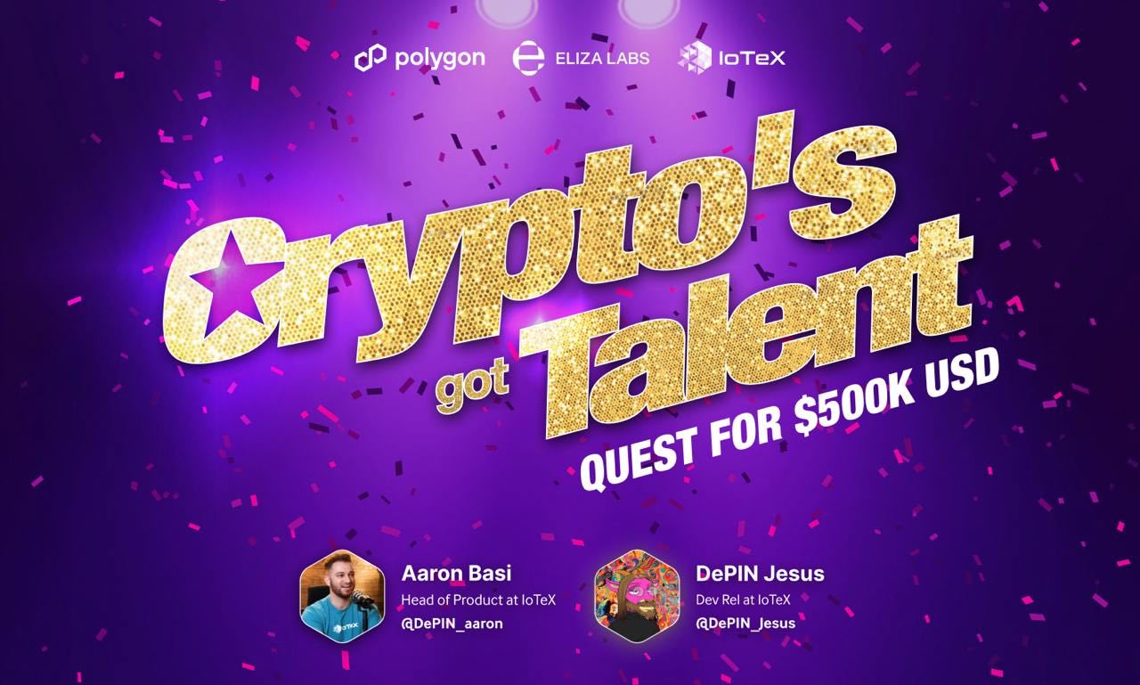 Cryptoβs Got Talent (CGT) is the first-ever live talent show dedicated to discovering and supporting the most promising builders in the Decentralized Physical Infrastructure Networks (DePIN) space. Powered by IoTeX in collaboration with Polygon and ElizaOS, CGT flips the traditional grant model on its head by running the entire selection process live and in publicβgiving projects unparalleled exposure from day one.