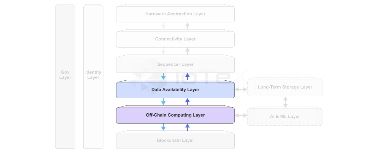 While IoTeX does not provide any Data Availability DIM, W3bstream will support popular Data Availability (DA) infrastructures. We anticipate that third-party projects will develop DIMs to serve as DA layers, integrating seamlessly with W3bstream.