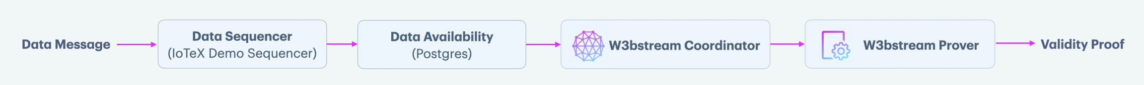 Now that we have a basic DePIN stack running, including a data sequencer, a data availability service, and a minimal W3bstream network, let's test the setup by sending a data message targeting one of the three demo projects.
